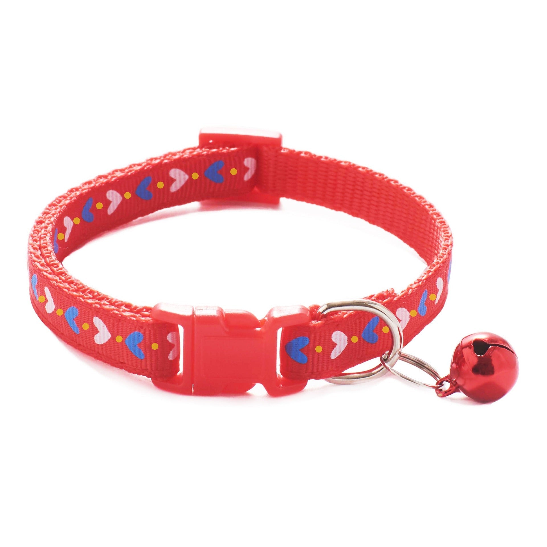 Hearts Patterned Adjustable Cat Collar Kitten Puppy Dog Pet Bell Snap Buckle